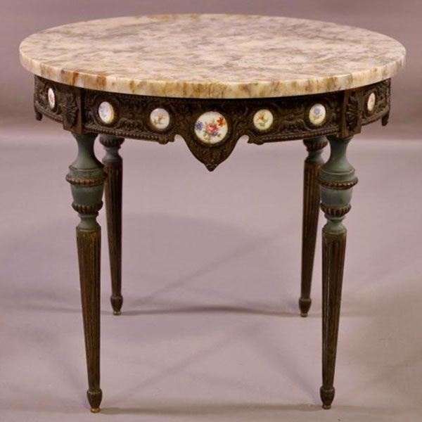 Home Accessories ORNATE FRENCH STYLE METAL BASE MARBLE TOP SIDE TABLE