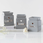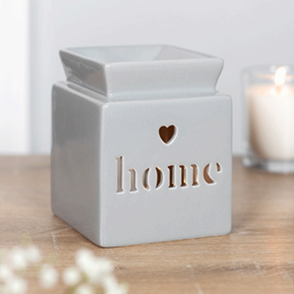 This light grey ceramic oil burner features a cutout heart and ‘home’ text in a cute, contemporary design. Place fragrance oil or wax melts into the built-in dish with a standard tealight inside to fill the home with calming fragrance. Product Dimensions: H11.5cm x W10cm x D10cm Packaged Dimensions: H15cm x W14cm x D14cm