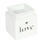 This ceramic oil burner features a cutout heart and “love” text in a cute, contemporary design. Place fragrance oil or wax melts into the built-in dish with a standard tealight inside to fill the home with calming fragrance. Comes in white and grey colours. Product Dimensions: H11.5cm x W10.5cm x D10.5cm. Packed Dimensions: H13.5cm xW12.5cm x D12cm.