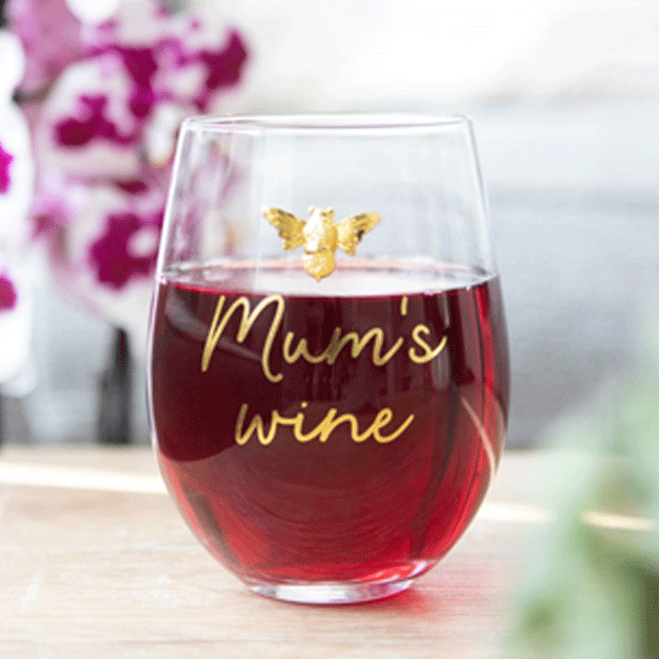 Give Mum the gift of wine with this stemless wine glass finished with a gold tone bee accent and packaged in a matching giftbox. Holds 500ml of liquid. Hand wash only. Do not microwave. Product Dimensions: H12.2cm x W9.2cm x D9.2cm Packaged Dimensions: H13cm x W9.5cm x D9.5cm