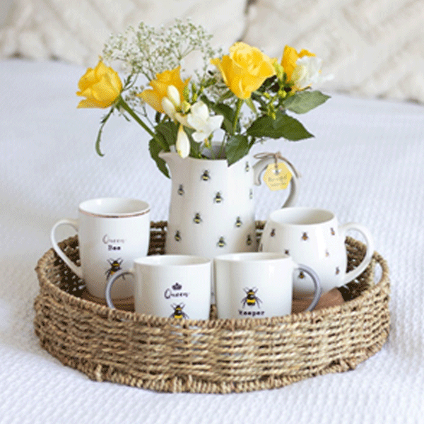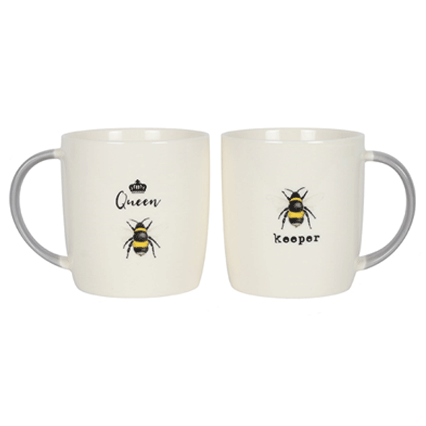 A pair of mugs which feature complimentary Bee designs. One mug features the words ‘Queen Bee’ and the other ‘Bee Keeper’ Product Dimensions: H9cm x W11cm x D11cm Packaged Dimensions: H10cm x W25cm x D9.5cm.
