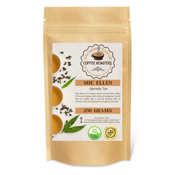 Sue Ellen is a classic blend of black tea from India, China, and Ceylon with hints of bergamot oranges. Much like our Aspen tea, it can be brewed with or without milk and enjoyed throughout the day.