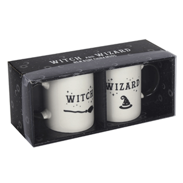 This set of two mugs are printed with the word ‘Witch’ on one mug and ‘Wizard’ on the other. Great for Harry Potter fans. Product Dimensions: H9.5cm x W12cm x D8cm Packaged Dimensions: H10.5cm x W26cm x D9cm.