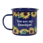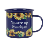 Navy blue enamel mug with contrasting bright sunflower design and the words ‘You are my sunshine’. A great mug for brightening up the day and durable enough to take camping or out on picnics. Not suitable for microwave use. Product Dimensions: H9cm x W12cm x D10cm Packaged Dimensions: H9cm x W12cm x D10cm.