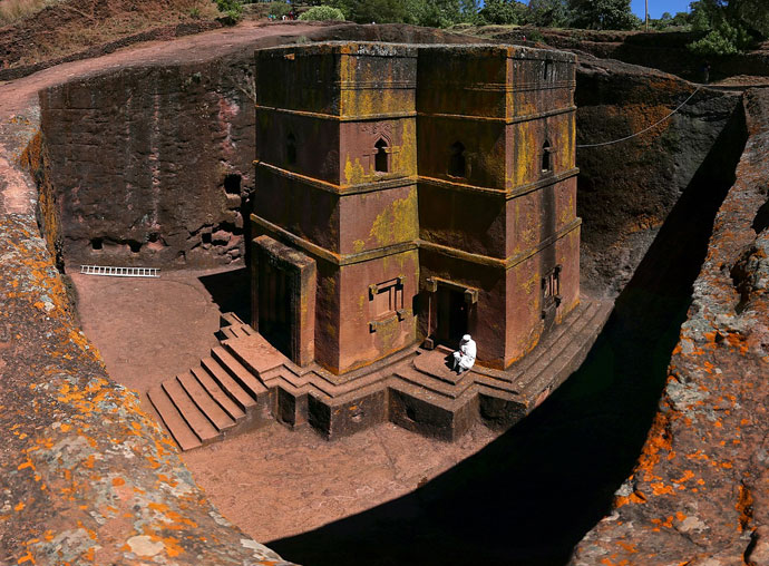 Lalibela is a town in the Amhara region of northern Ethiopia. It’s known for its distinctive rock-cut churches dating from the 12th and 13th centuries, which are pilgrimage sites for Coptic Christians. Carved out of rock, the subterranean monoliths include huge Bete Medhane Alem, and cross-shaped Bete Giyorgis. Many are joined by tunnels and trenches, and some have carved bas-reliefs and colored frescoes inside.