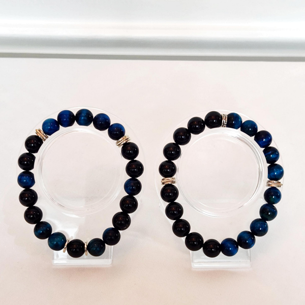 Stones – Cyan tiger eye, Black Onyx, 925 Sterling Silver Spacers