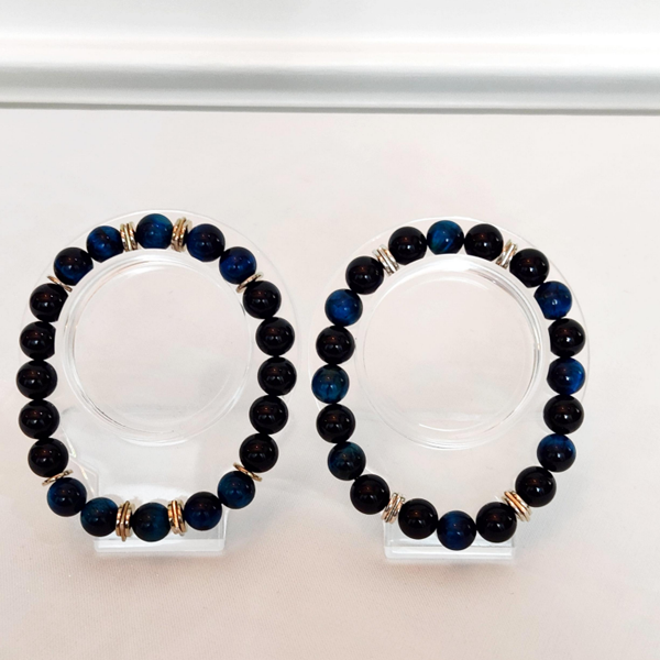 Stones – Cyan tiger eye, Black Onyx, 925 Sterling Silver Spacers