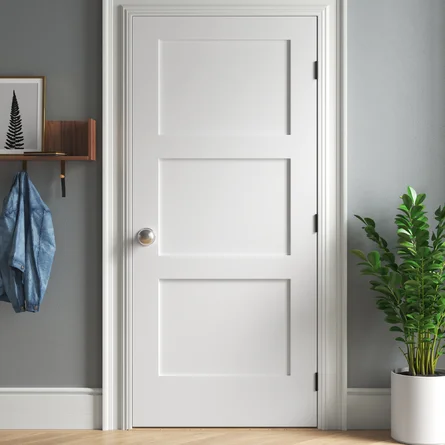 Sophisticated 3-panel shaker interior door highlighting graceful lines and a variety of genuine wood-look finishes, with solid core to boost noise reduction and durability.