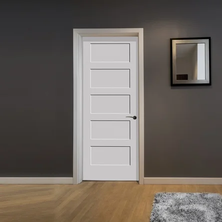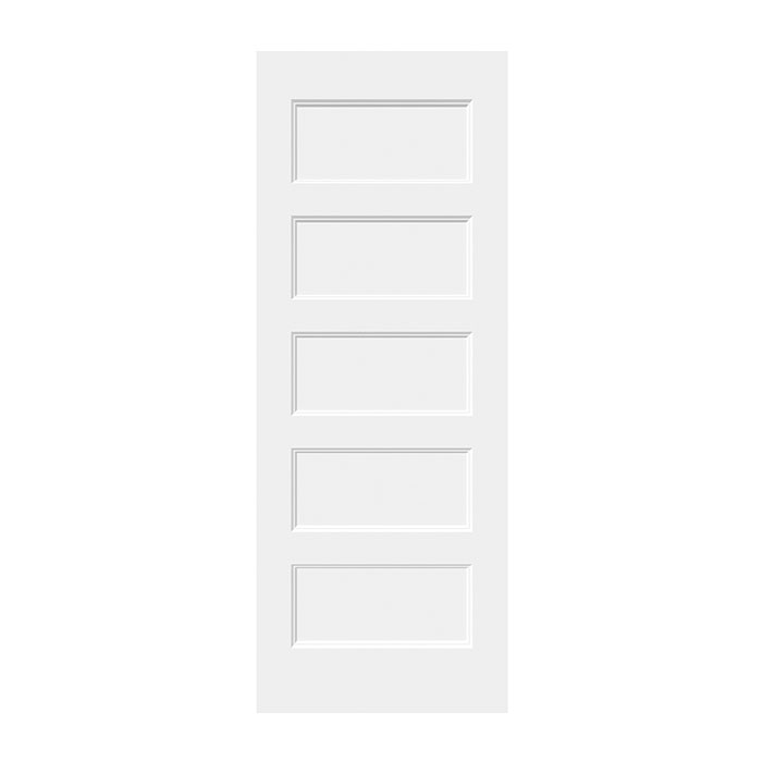 Budget-friendly 5-panel molded interior door showcasing an elegant design with a hollow core for lightweight and economical value, complete with a selection of realistic wood finishes to complement your space.