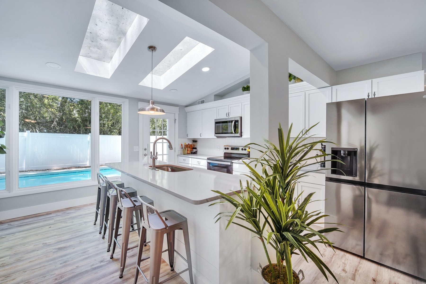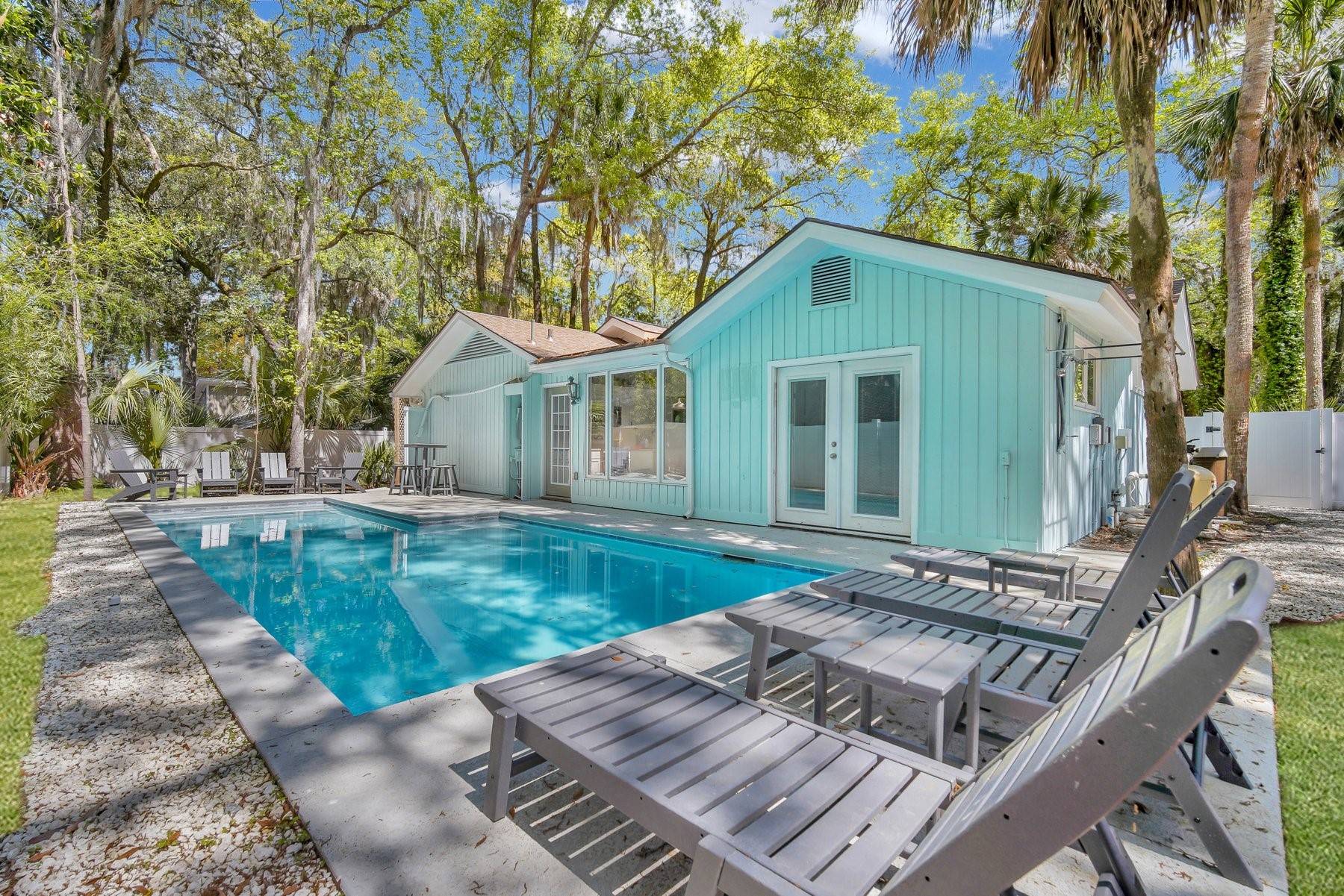 Newly remodeled ranch single story 4 BR, 4 BA house in the “downtown” area of Hilton Head Island. This home is a short walk to Coligny Beach and Plaza and features a private back yard swimming pool with grilling amenities. Its open floor plan is perfect for families. This home is central to everything yet private and spacious – the perfect setting to just sit back and relax.