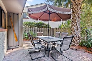 This quaint, casual 3 BR, 2 BA (and one ½ bath) beach inspired condo is tucked away in a quiet wooded area of Hilton Head Island. It features two separate patios with grille and dining area on the first level. Folly Field Beach is just a short 5-7 min stroll to the boardwalk. Lifeguards are on duty from March thru September and there is a bathroom, water fountain and shower off area in the center of the boardwalk. We provide a beach cart, chairs, umbrella and some toys for your use.