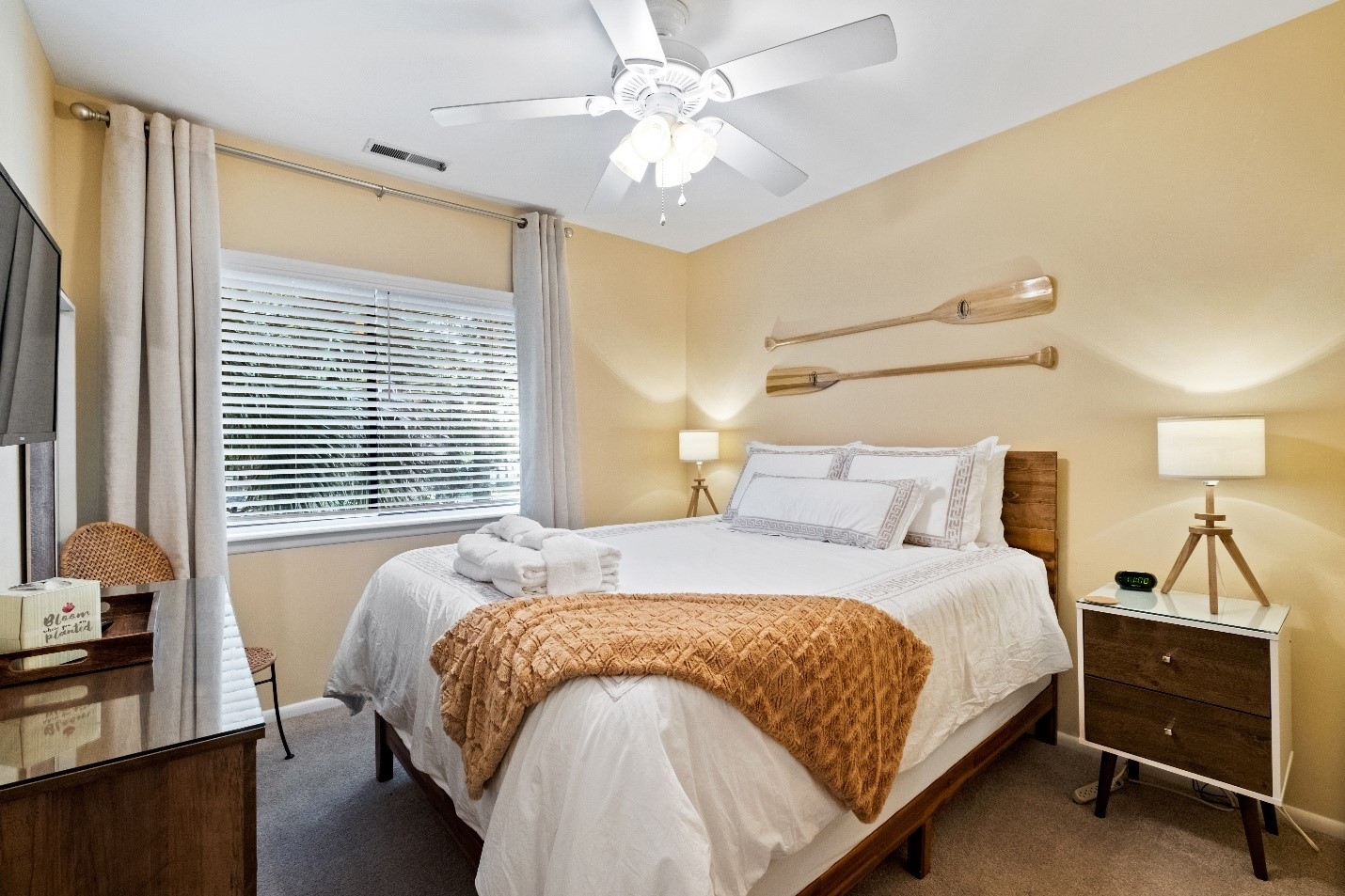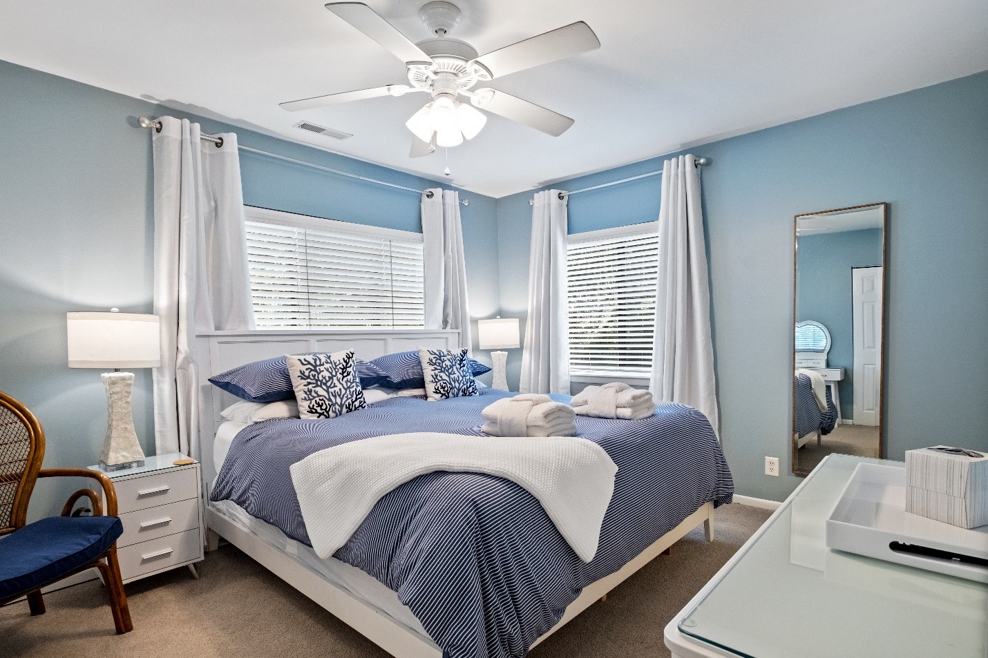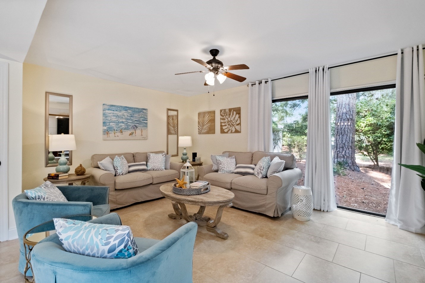 This quaint, casual 3 BR, 2 BA (and one ½ bath) beach inspired condo is tucked away in a quiet wooded area of Hilton Head Island. It features two separate patios with grille and dining area on the first level. Folly Field Beach is just a short 5-7 min stroll to the boardwalk. Lifeguards are on duty from March thru September and there is a bathroom, water fountain and shower off area in the center of the boardwalk. We provide a beach cart, chairs, umbrella and some toys for your use.