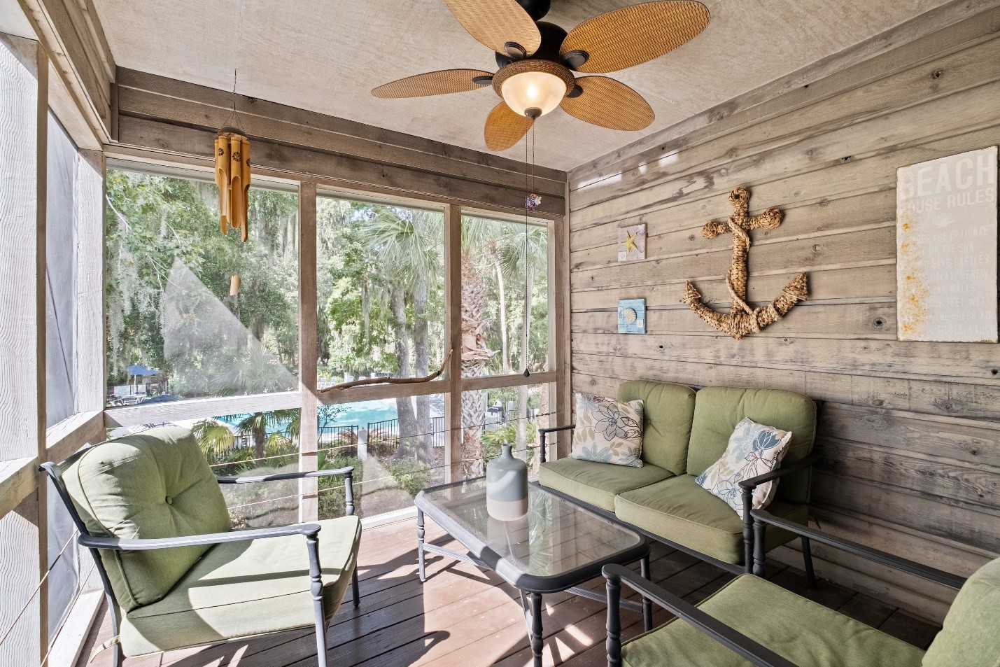 Windward Village is located within the Shipyard Planation. Shipyard is a gated community boasting many amenities including lush grounds, pool and hot tub (steps away from unit). The property has a spacious and beautifully furnished living and dining area. The large, screened porch off the living room overlooks the saltwater pool. There are two bedrooms, both upstairs. The master is furnished with a king bed and private bath, and the second bedroom offers two twins with in-suite bathroom. There’s also a half bath upstairs. With the pool and hot tub just steps away, its the perfect place to enjoy your island stay.