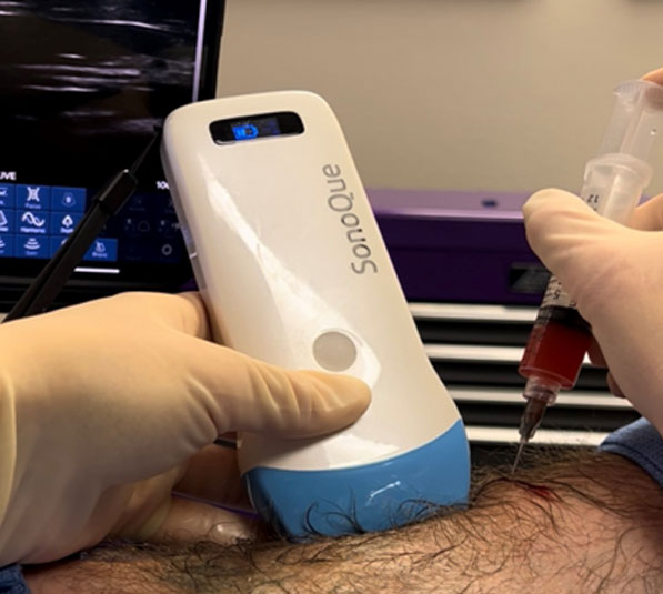 At Minnie Street Aesthetics we utilize ultrasound technology to place the PRP precisely where it needs to go. This technique not only increases the effectiveness of the treatment, but it also minimizes discomfort during the procedure. Additionally, lidocaine (a local anesthetic) is mixed with your PRP so that after the initial poke, the primary feeling is that of pressure as it’s being injected. As with other procedures, a strict sterile technique is utilized to prevent infection.