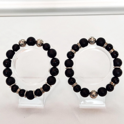 Black Matte Onyx, 925 Sterling Silver spacers