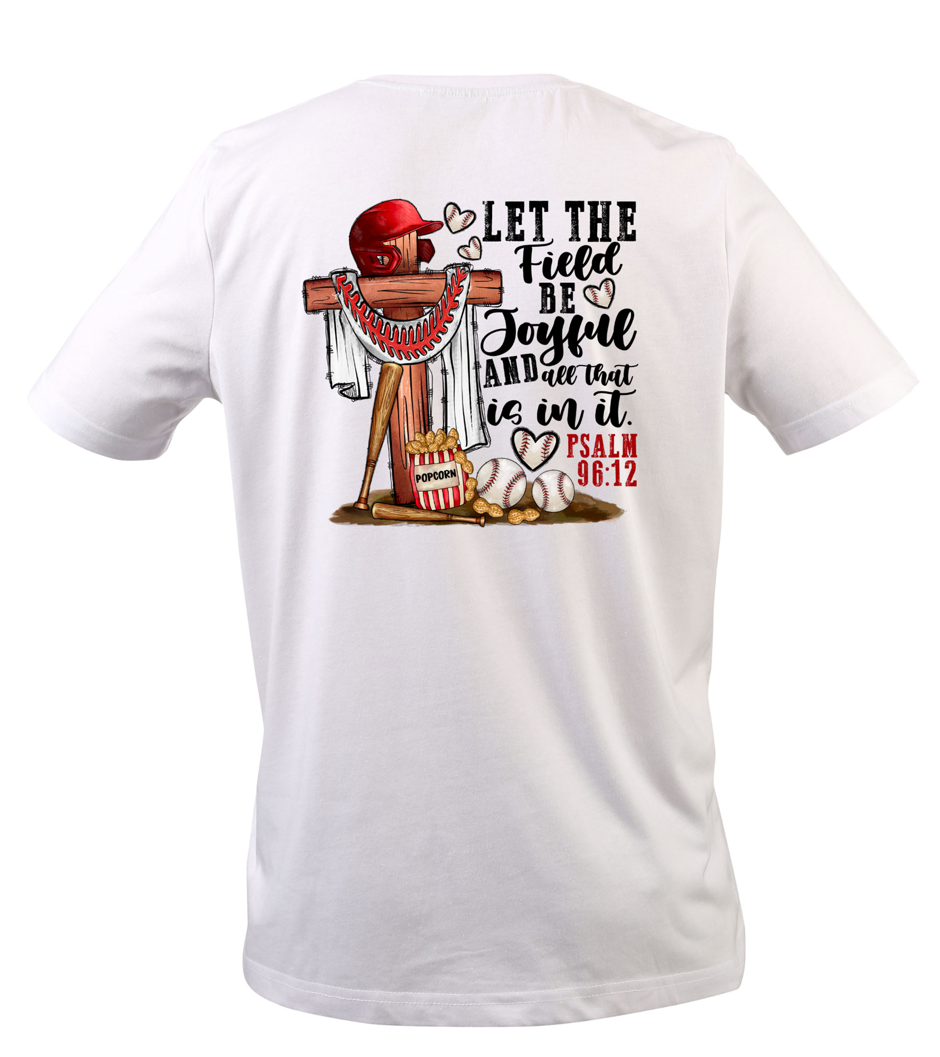 This t-shirt is perfect for anyone who loves baseball and wants to show off their faith in a stylish way. The front features a vibrant design with the message “Peace Love Baseball,” while the back displays the inspiring quote “Let the Field be Joyful and All that is in it Psalms 96:12,” with a unique and eye-catching design.